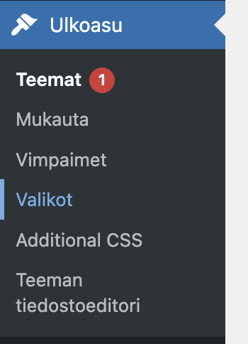 WordPressin ohjausnäkymän vasemmalla olevasta linkkilistasta löydät valikon Ulkoasun alta.