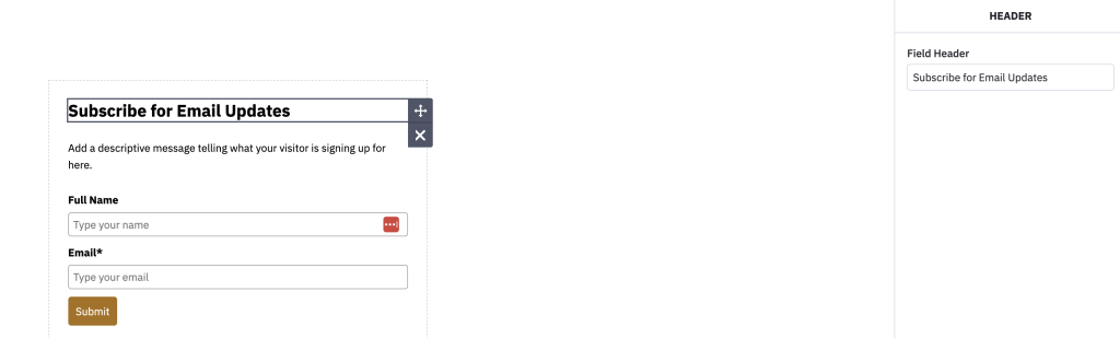 Seuraavaksi pääset muokkaamaan laskeutumissivua. Oikeassa reunassa näet kolme eri välilehteä, Fields, Style ja Options. Fields välilehdeltä ei oikeastaan tarvita mitään, sillä tarvittavat tiedot näkyvät lomakkeella jo. Emme tarvitse henkilöstä mitään muuta tietoa kuin etunimen ja sähköpostiosoitteen.