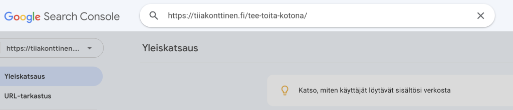Käy jokainen 15 luetuimmasta blogitekstistä läpi ja tarkista, että ne on indeksoitu. Lisää siis blogitekstin url hakukenttään ja paina enter.