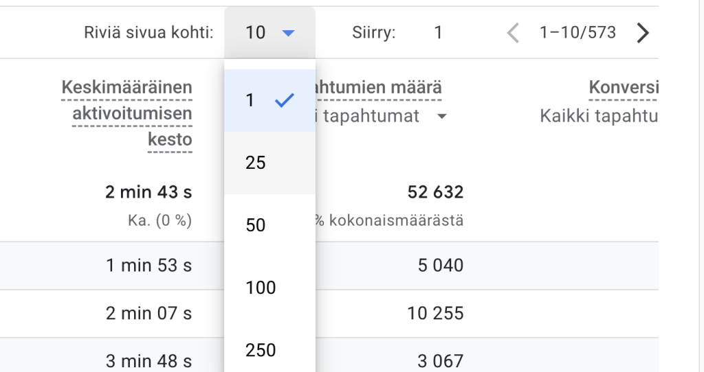 Konversio kertoo kuinka moni myyntisivulla käyneistä lopulta osti kurssin tai palvelun. Myyntisivun kävijämäärän löydät samalla tavalla kuin CTR kohdassa annetut ohjeet.