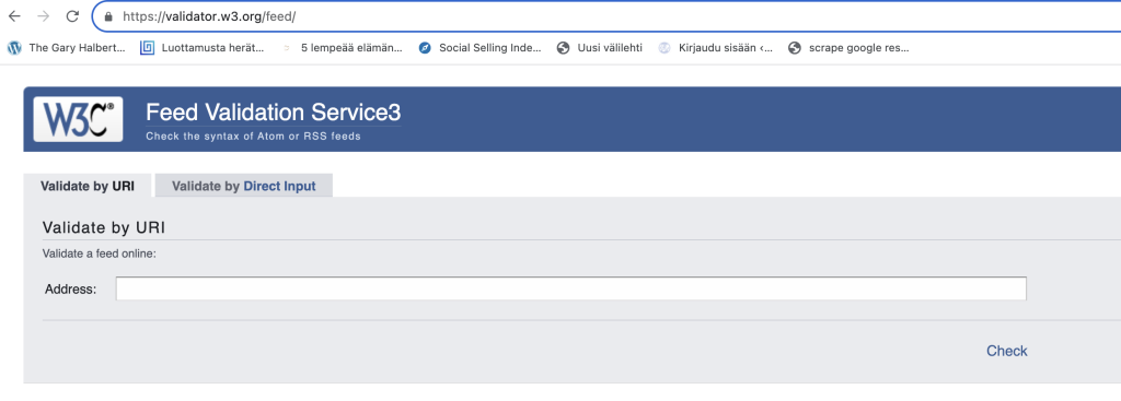 …liitä se Feed Validation Serviceen ja klikkaa ”Check” linkkiä.