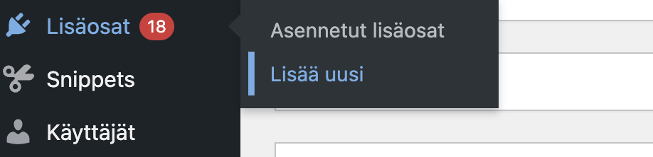 Ensin käydään lisäämässä uusi lisäosa. Klikkaa siis ”Lisäosa” ja sitten ”Lisää uusi”.