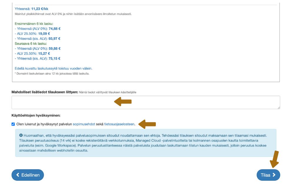 • ja sitten vain klikkaat ”Tilaa” painiketta.