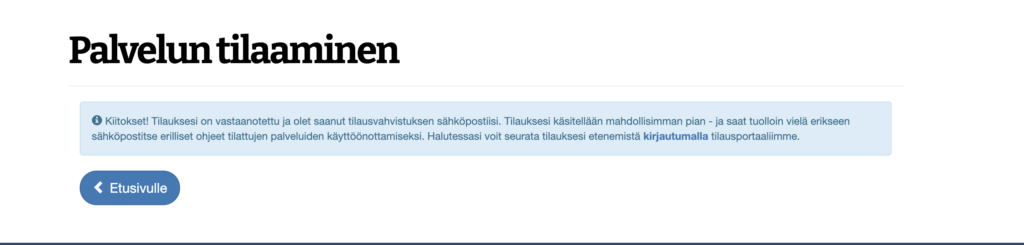 Saat vahvistuksen palvelun tilaamisesta ja sitten vain odottelemaan tunnuksia! Tässä kohtaa en kirjautuisi sivustolle vaan odottaisin, että siirto on tehty ja tunnukset ovat tulleet sinulle sähköpostiin.